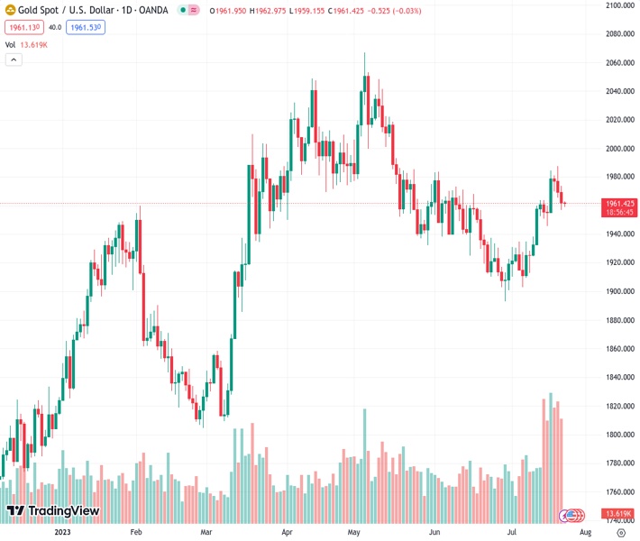 The price of gold, denoted as XAUUSD, remained within a small range of trading during the Asian session on Monday, with the current price at 1,961.31.