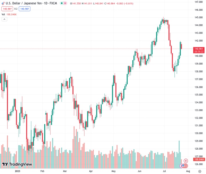 USDJPY currently trading at 140.92 at the time of writing. Pair opened at 141.82 and is trading with a change of -0.63 % .