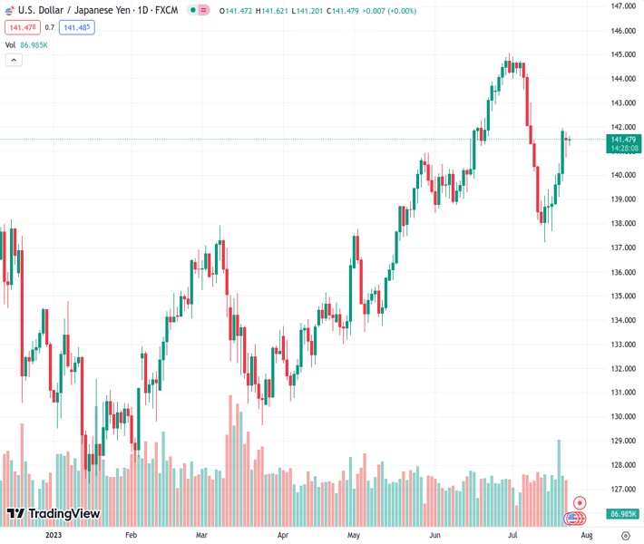 USDJPY currently trading at 141.49 at the time of writing. Pair opened at 141.48 and is trading with a change of 0.01 % .