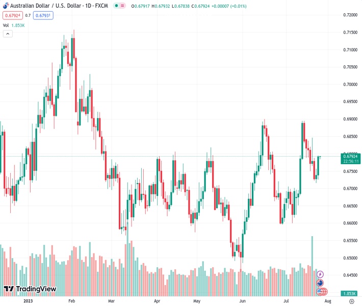 AUDUSD currently trading at 0.6789 at the time of writing. Pair opened at 0.6739 and is trading with a change of 0.74 % .
