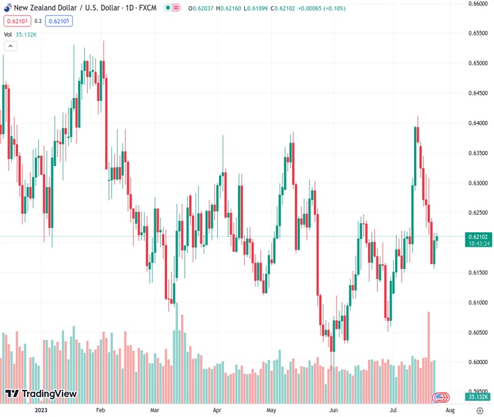 NZDUSD currently trading at 0.6214 at the time of writing. Pair opened at 0.6204 and is trading with a change of 0.16 % .