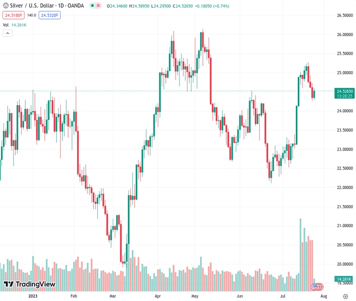 XAGUSD currently trading at 24.57 at the time of writing. Pair opened at 24.35 and is trading with a change of 0.9 % .
