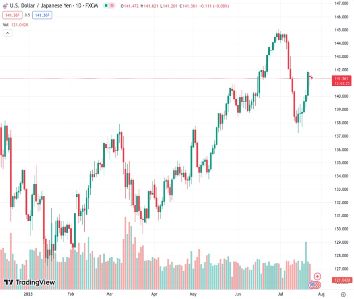 UOB predicts that the USDJPY currency pair, currently trading at 141.360, has the potential to continue its upward trend and reach 143.00.