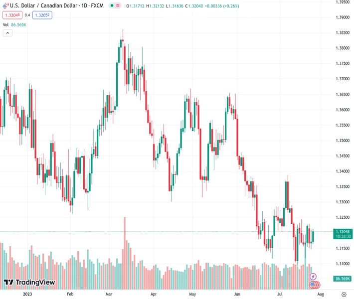 According to Scotiabank, the USDCAD exchange rate of 1.32090 is expected to gradually decline and approach 1.30 by the end of the year.