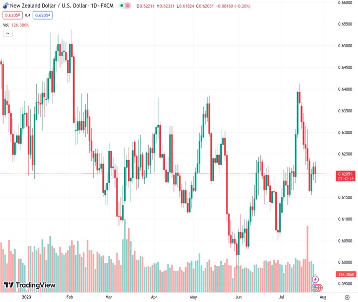 Investors are waiting for guidance from the Federal Reserve on monetary policy, causing selling pressure to be felt around 0.6230 for the NZD/USD pair at a current level of 0.62045.