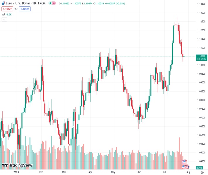 EURUSD currently trading at 1.1051 at the time of writing. Pair opened at 1.1065 and is trading with a change of -0.13% % .
