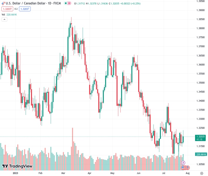 USD/CAD is sidelined on the front side of the bearish trend and has not been rattled by what was a rather benign outcome form the Federal Reserve meeting. The Fed, raised its interest rate decision by a 25 bps rate hike to 5.25-5.50%, as expected.