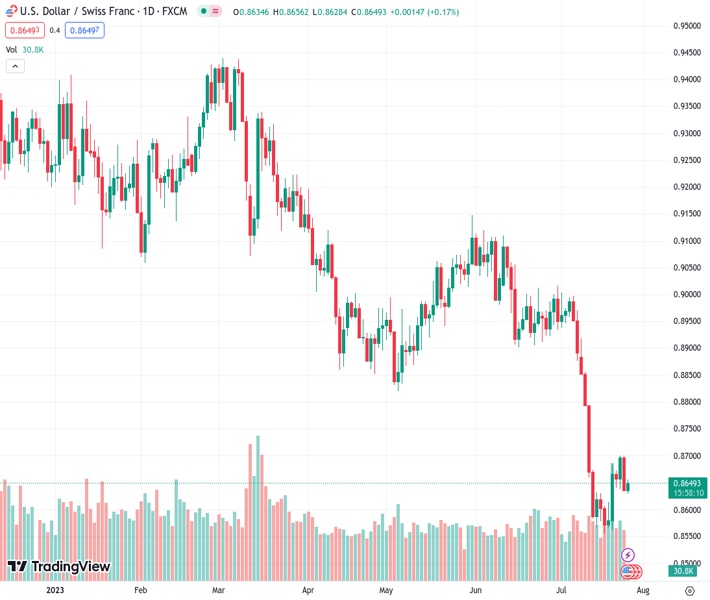 USDCHF currently trading at 0.8648 at the time of writing. Pair opened at 0.8638 and is trading with a change of 0.12 % .