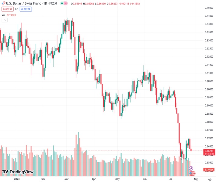 USDCHF currently trading at 0.8622 at the time of writing. Pair opened at 0.8638 and is trading with a change of -0.19 % .