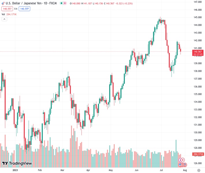 USDJPY currently trading at 140.54 at the time of writing. Pair opened at 140.91 and is trading with a change of -0.26 % .