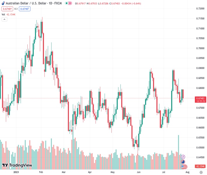 Also previously adding strength to the AUD/USD upside, as well as favoring the risk-on mood, could be the downbeat statistics from the major economies which flag the end of the rate hike trajectory at the key central banks. Furthermore, the International Monetary Fund’s (IMF) upward revision to the global growth forecasts also favored the risk-on mood and the pair prices. Furthermore, Reuters’ news stating China state banks’ defense of the Yuan (CNY), by selling the US Dollar, also seemed to have fuelled the pair prices.