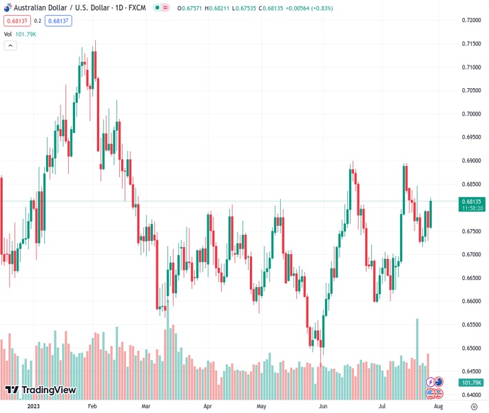 AUDUSD currently trading at 0.6815 at the time of writing. Pair opened at 0.6758 and is trading with a change of 0.84 % .