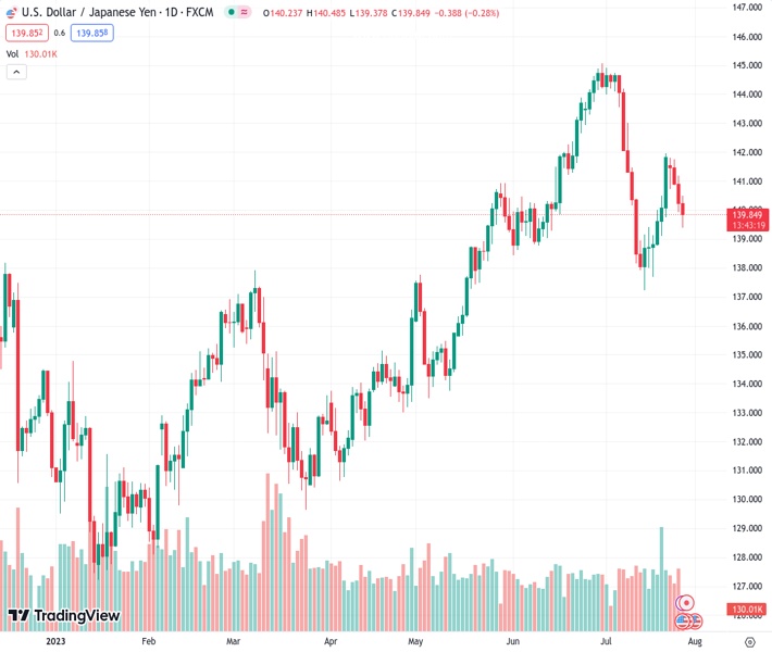 USDJPY currently trading at 140.04 at the time of writing. Pair opened at 140.24 and is trading with a change of -0.14 % .