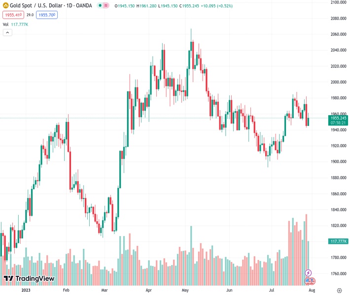 Gold price forecast at $1,955.07 indicates decreasing inflation due to lower-than-anticipated ECI data, which supports the notion.
