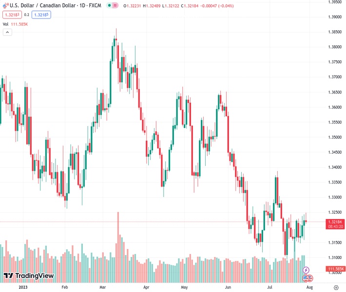 The USD/CAD pair, currently at 1.32192, is expected to experience a significant decline towards the 1.3000/1.2930 level if it fails to protect the 1.3110 support level, according to SocGen.