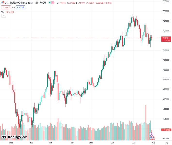 The USDCNH pair is currently trading at 7.16410. The possibility of a decrease in value is reduced as it remains above 7.2000, according to UOB.