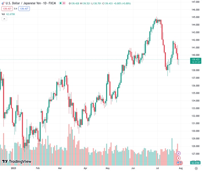 USDJPY currently trading at 139.25 at the time of writing. Pair opened at 139.47 and is trading with a change of -0.16 % .