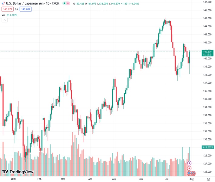 • At the time of writing, the USD/JPY pair is trading near the 150.00 area, 1% above its opening price, after reaching a daily low of 138.05. The U.S. dollar, measured by the DXY index, trades relatively flat at the end of the week following pressured down by soft Core Personal Consumption Expenditures (PCE) figures from June.