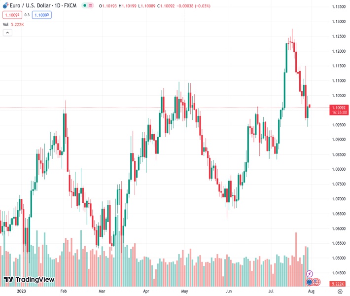 The EUR/USD pair, trading at a rate of 1.10094, is struggling to maintain momentum amidst a week filled with significant economic events.