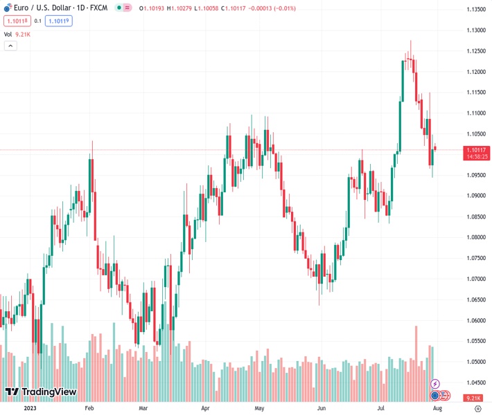 The European-United States dollar pair, currently trading at 1.10128, is showing signs of declining further but the momentum of this decline is slowing down, according to UOB.