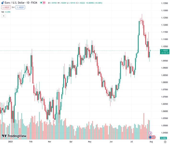 EURUSD currently trading at 1.1025 at the time of writing. Pair opened at 1.1018 and is trading with a change of 0.06% % .