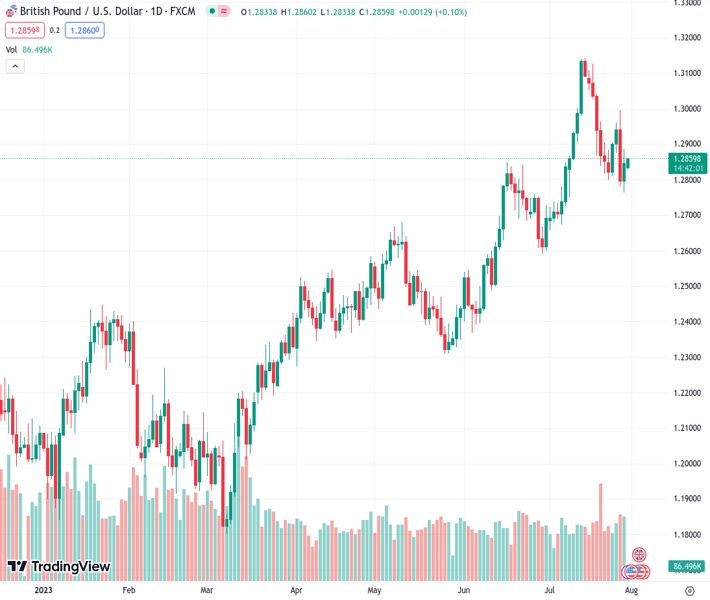 The GBPUSD pair, currently at 1.28572, is expected to encounter strong support near the 1.2720 level according to UOB.