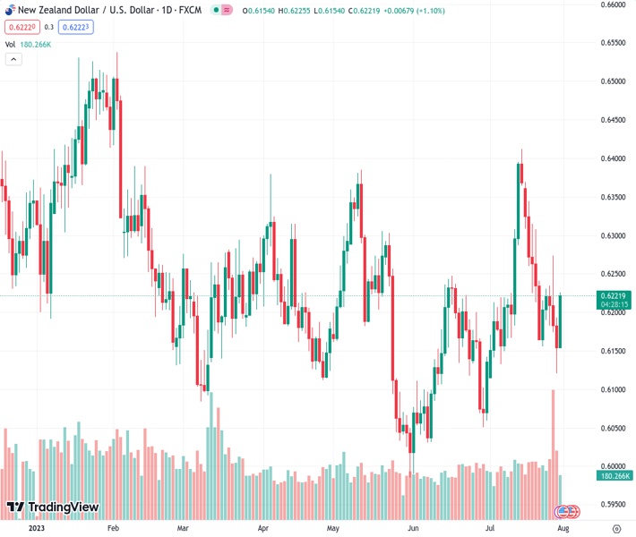 NZDUSD currently trading at 0.6219 at the time of writing. Pair opened at 0.615 and is trading with a change of 1.12 % .