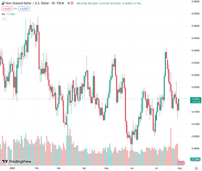 NZDUSD currently trading at 0.6196 at the time of writing. Pair opened at 0.615 and is trading with a change of 0.75% % .