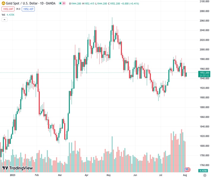 Gold price rebounds from its lowest point of the week following a daily decline, according to the current value of XAUUSD at 1,952.20. Analysts at Nehcap anticipate that the potential decrease will be minimal.
