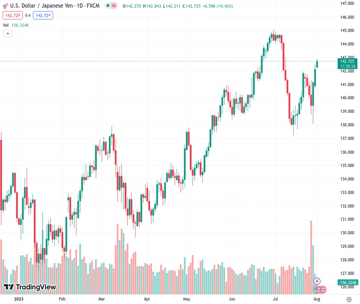 HSBC expects the USDJPY to remain extremely unpredictable in the near future, with a current price of 142.720.