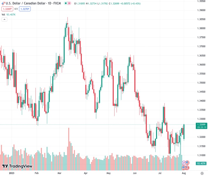 HSBC predicts that the exchange rate of the US dollar against the Canadian dollar, currently at 1.32661, will decrease in the upcoming weeks and surpass the support level at 1.31.