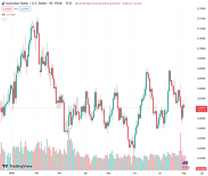 AUDUSD currently trading at 0.6709 at the time of writing. Pair opened at 0.6717 and is trading with a change of -0.12 % .