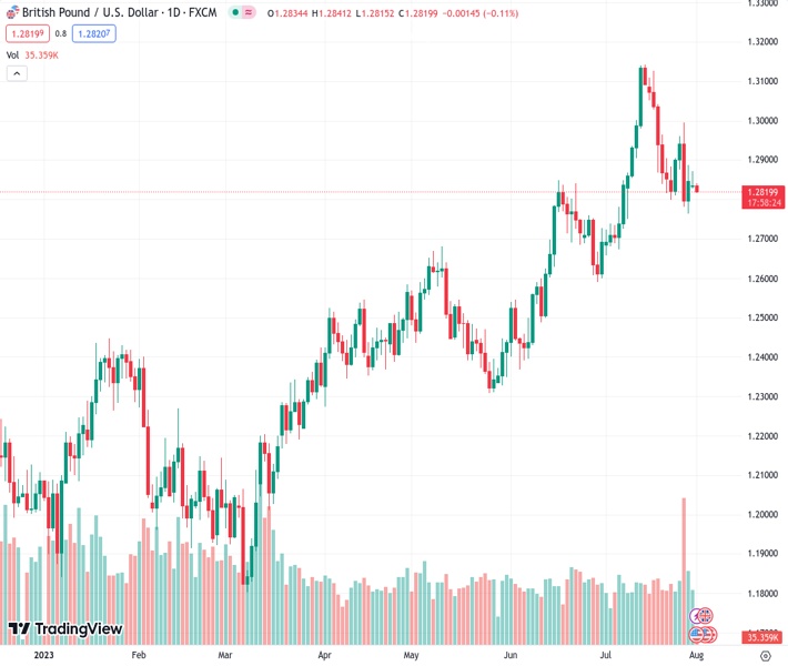 Apart from this, bets for more interest rate hikes by the Bank of England (BoE) could underpin the British Pound and help limit the downside for the GBP/USD pair, at least for the time being. In fact, the UK central bank is widely expected to raise its benchmark interest rate by 25 bps on August 3, to 5.25%, or the highest since early 2008. Moreover, the markets have been pricing in two more BoE rate hikes by the end of this year as price pressures persist. This, in turn, warrants caution before placing aggressive bearish bets and positioning for further losses.
