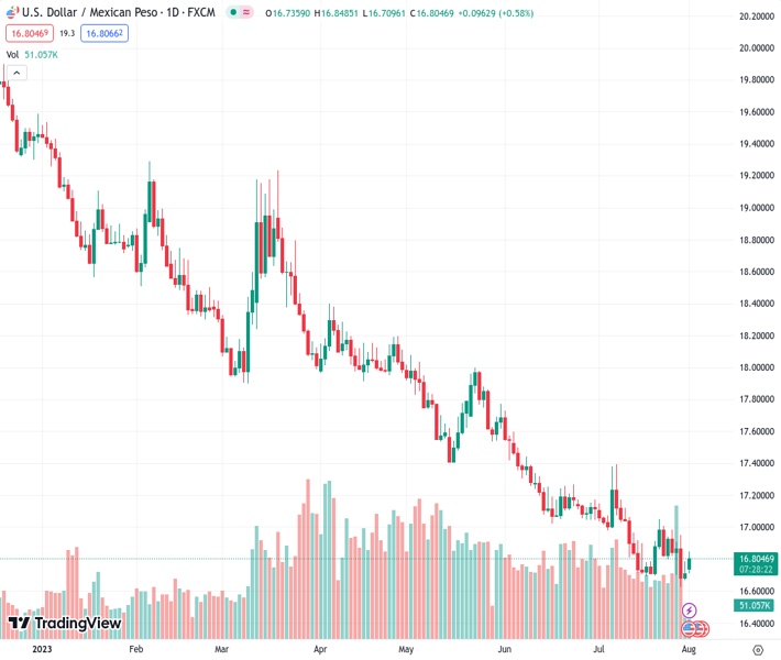 The prediction for the Mexican peso remains positive, according to Commerzbank, with the USDMXN exchange rate at 16.7950.