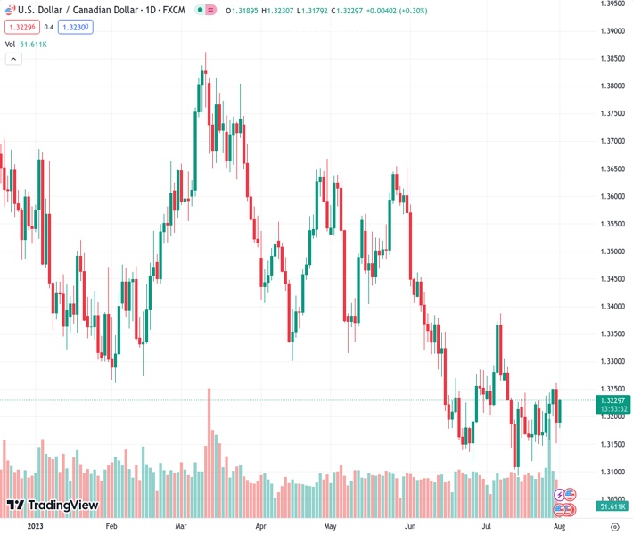 USDCAD currently trading at 1.3226 at the time of writing. Pair opened at 1.319 and is trading with a change of 0.27% % .