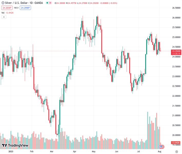 XAGUSD currently trading at 24.3 at the time of writing. Pair opened at 24.3 and is trading with a change of 0.0 % .