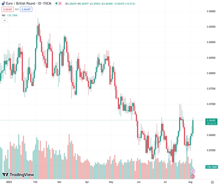 EURGBP currently trading at 0.8638 at the time of writing. Pair opened at 0.8605 and is trading with a change of 0.38 % .