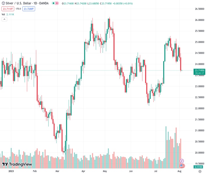 Silver Price (XAG/USD) remains sidelined around $23.70 amid a lackluster Asian session on early Thursday, after declining in the last two consecutive days to drop to the lowest levels since July 12.
