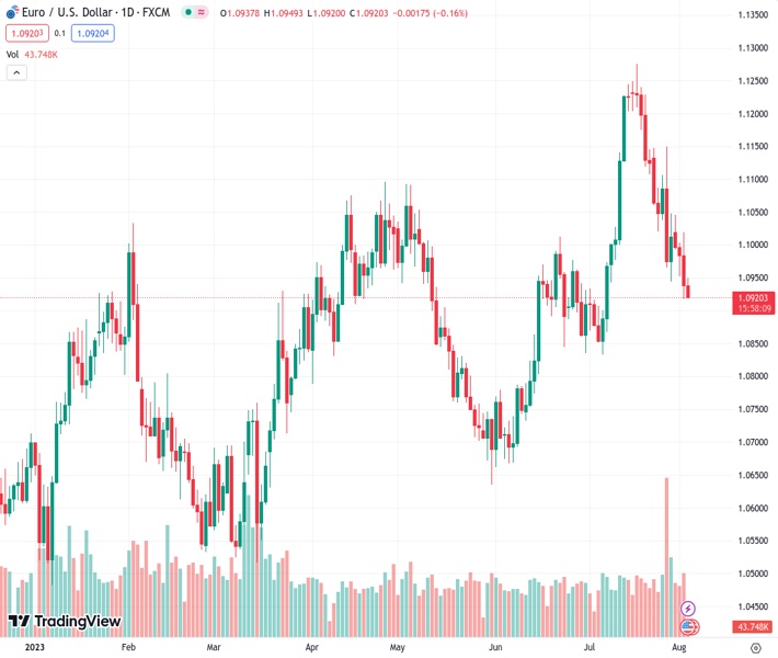 EURUSD currently trading at 1.0923 at the time of writing. Pair opened at 1.0938 and is trading with a change of -0.14 % .
