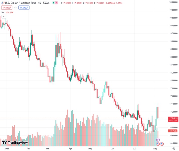 CIBC has lowered their predictions for the USDMXN exchange rate in Q3 and Q4 to 17.50 and 18.00, respectively.