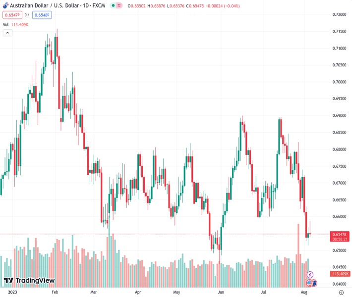 AUDUSD currently trading at 0.6547 at the time of writing. Pair opened at 0.655 and is trading with a change of -0.05 % .