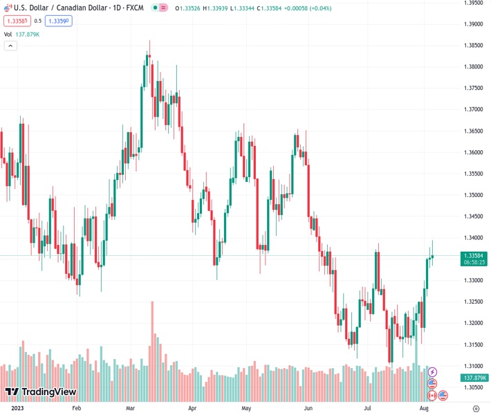 The Canadian dollar (CAD), represented by the symbol USDCAD at a value of 1.33528, is not expected to experience significant fluctuations due to its lower beta status. This trend is predicted to persist, according to CIBC.