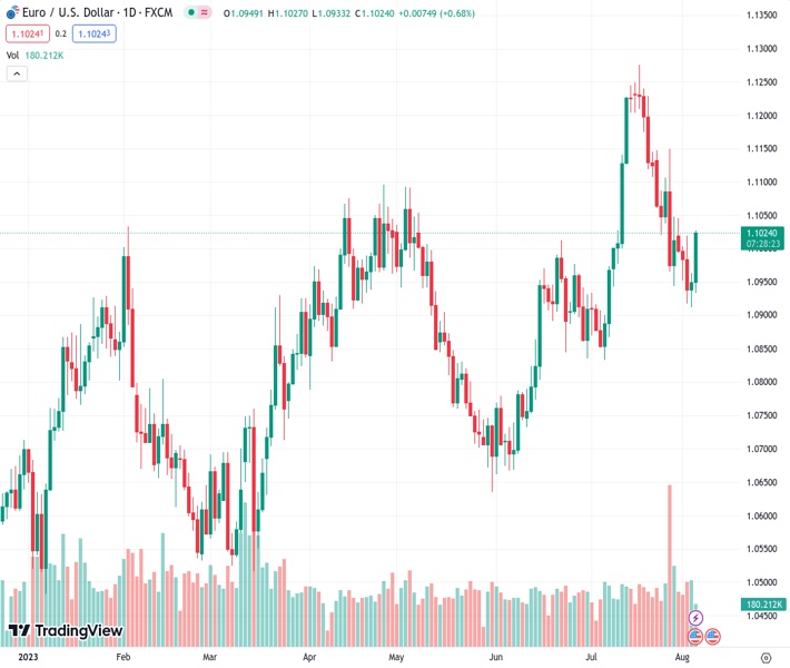 EURUSD currently trading at 1.1021 at the time of writing. Pair opened at 1.0949 and is trading with a change of 0.66 % .
