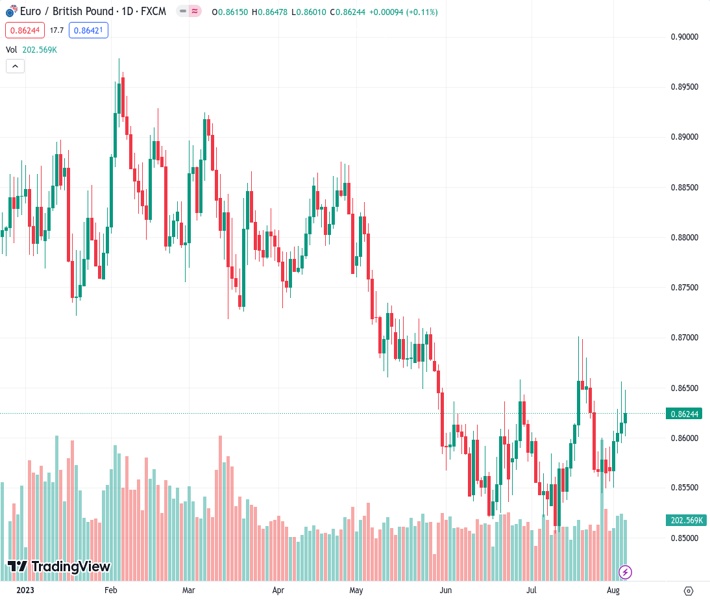 EURGBP currently trading at 0.8638 at the time of writing. Pair opened at 0.8616 and is trading with a change of 0.26 % .