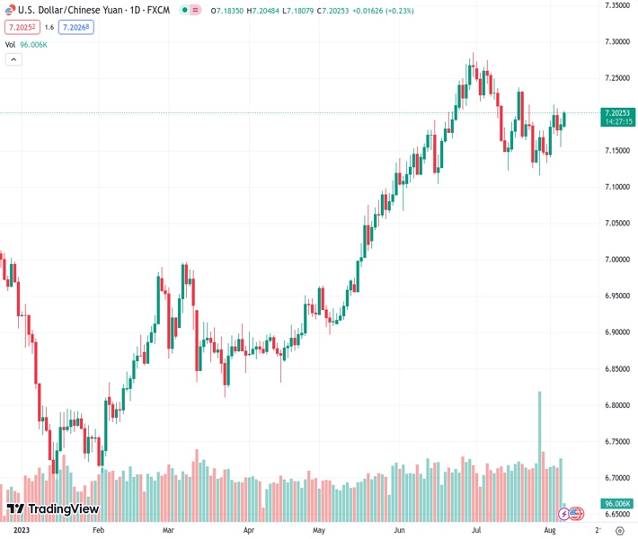 According to CIBC, the USDCNH exchange rate of 7.20390 is projected to decrease to 7.08 during the third quarter and further decline to 6.85 during the fourth quarter.