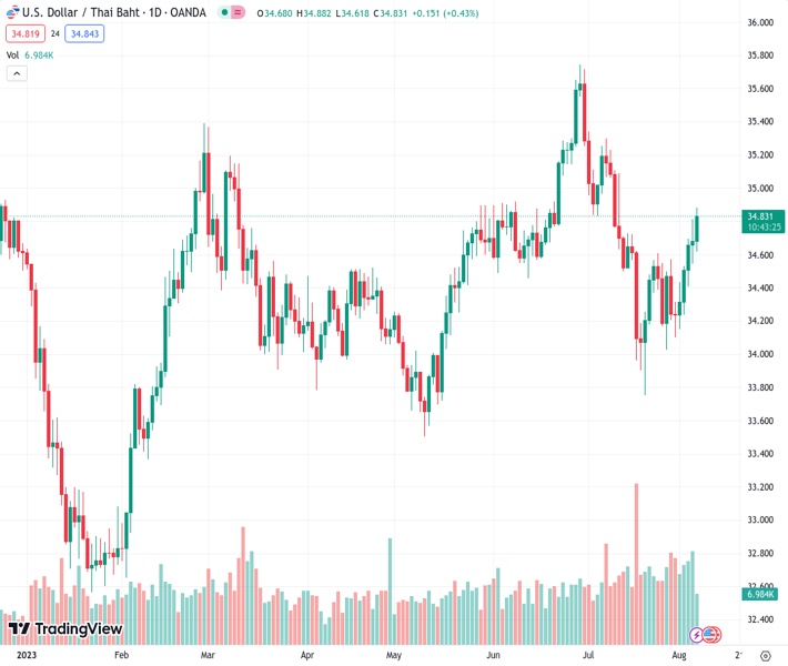 According to UOB, there is a possibility of an increase in value for USDTHB in the near future at a rate of 34.8200 or higher.