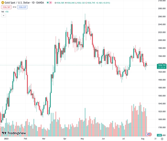XAUUSD currently trading at 1936.66 at the time of writing. Pair opened at 1942.88 and is trading with a change of -0.32% % .