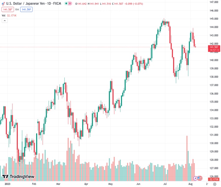 USDJPY currently trading at 141.67 at the time of writing. Pair opened at 141.76 and is trading with a change of -0.06 % .