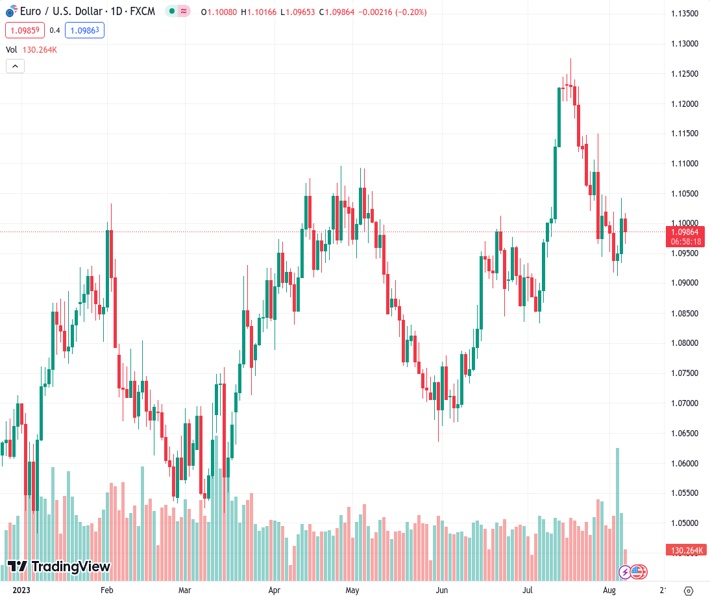 EURUSD currently trading at 1.1002 at the time of writing. Pair opened at 1.1009 and is trading with a change of -0.06 % .