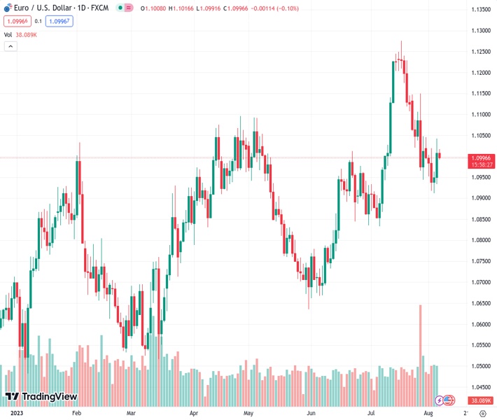 EURUSD currently trading at 1.0994 at the time of writing. Pair opened at 1.1009 and is trading with a change of -0.14 % .